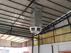 ◊ Không khí ngoài trời sau khi được làm mát và thanh lọc bụi bẩn. Dòng không khí mát và sạch liên tục được đưa vào không gian trong nhà xưởng qua hệ thống ống gió, cửa gió. Với việc cung cấp không khí tươi liên tục, không gian trong nhà xưởng sẽ đạt trạng thái áp suất dương. Tại trạng thái này, không khí nóng, mùi, bụi…tồn tại trong xưởng sẽ dễ dàng thoát ra ngoài. Tạo nên môi trường mát mẻ, thông thoáng, sạch sẽ và thoải mái sau khi lắp đặt Máy làm mát.