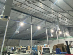 ◊ Không khí ngoài trời sau khi được làm mát và thanh lọc bụi bẩn. Dòng không khí mát và sạch liên tục được đưa vào không gian trong nhà xưởng qua hệ thống ống gió, cửa gió. Với việc cung cấp không khí tươi liên tục, không gian trong nhà xưởng sẽ đạt trạng thái áp suất dương. Tại trạng thái này, không khí nóng, mùi, bụi…tồn tại trong xưởng sẽ dễ dàng thoát ra ngoài. Tạo nên môi trường mát mẻ, thông thoáng, sạch sẽ và thoải mái sau khi lắp đặt Máy làm mát.